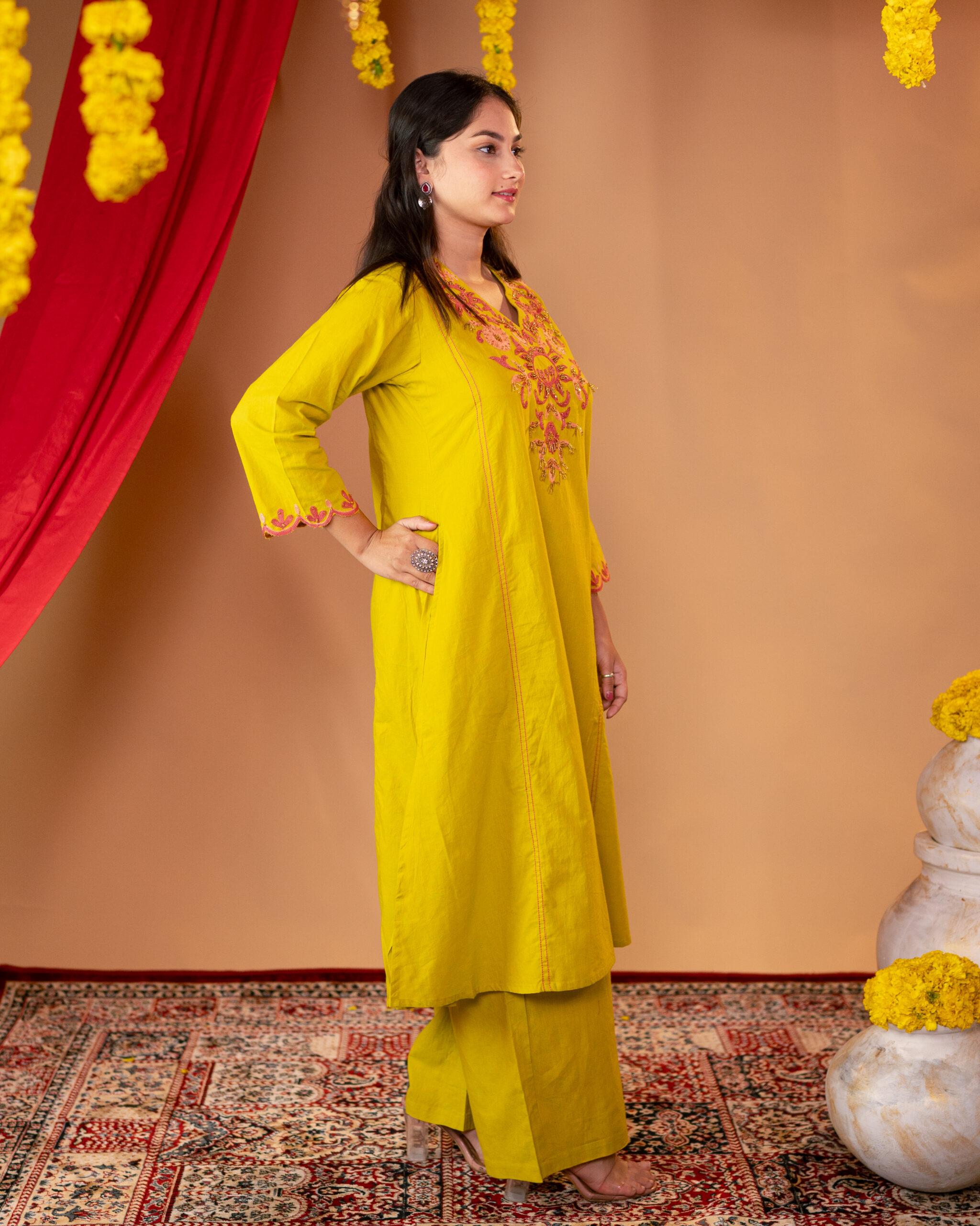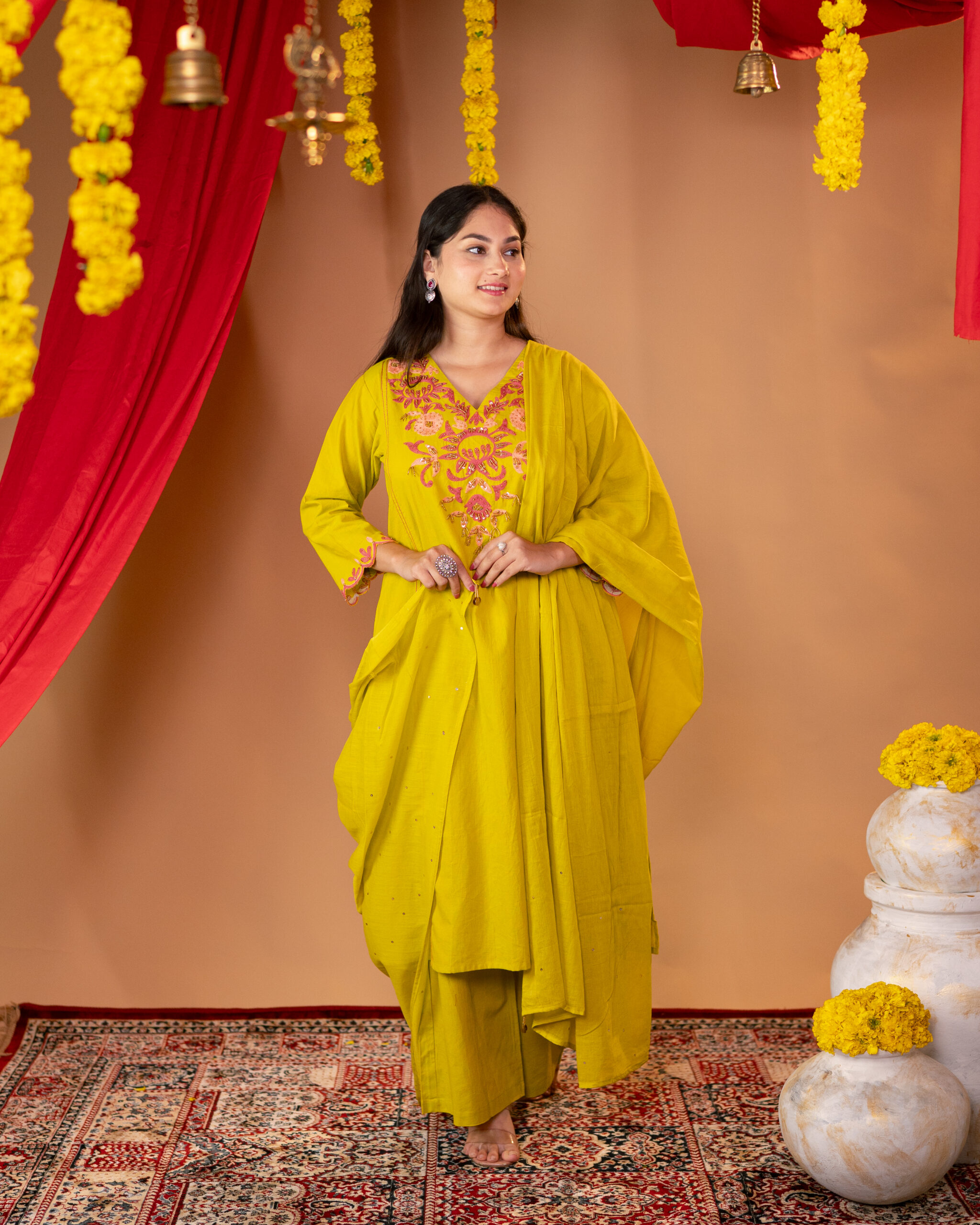 - Mustard Color with Beautiful Hand Aari Embroidery with Beads and Sequence detailing