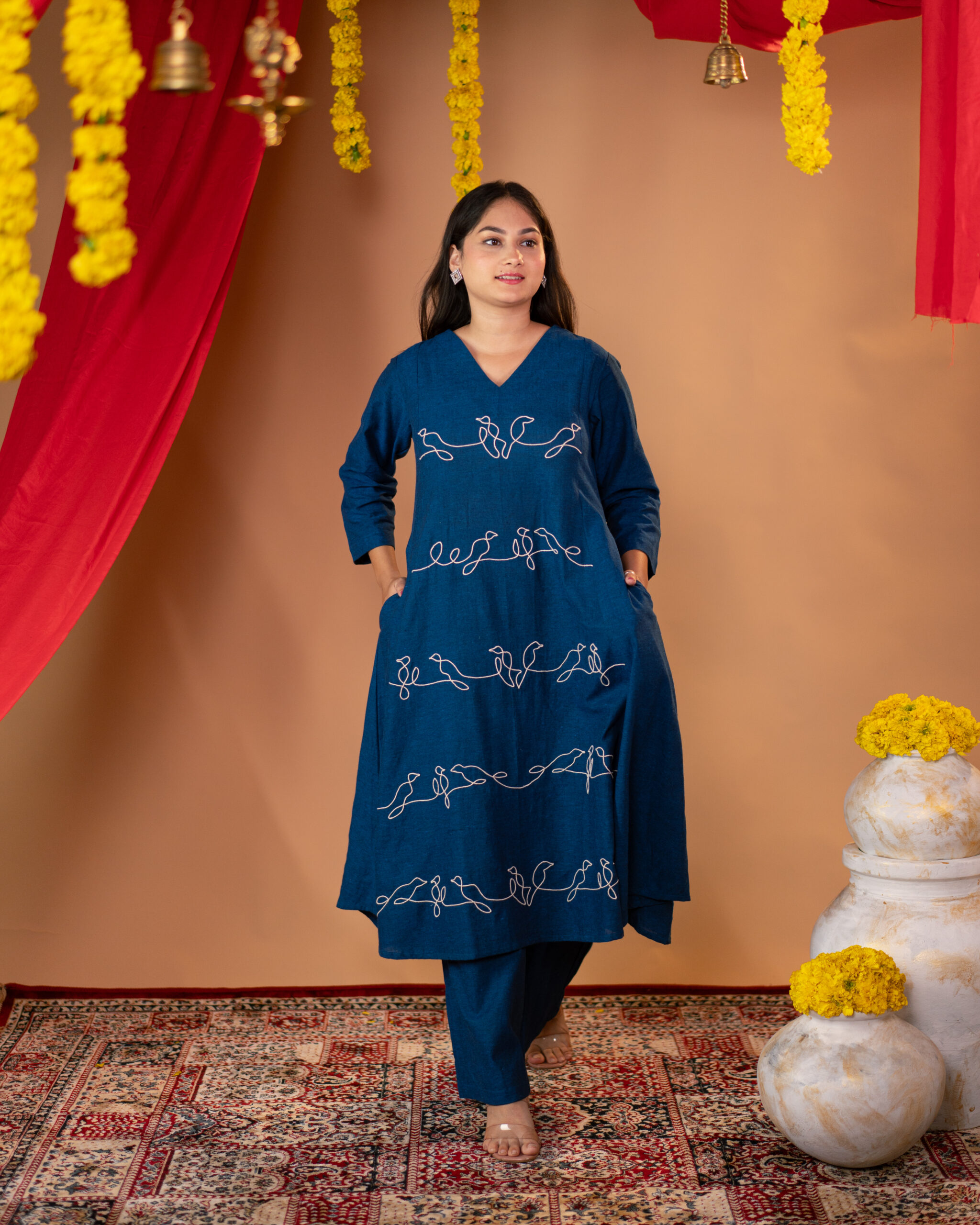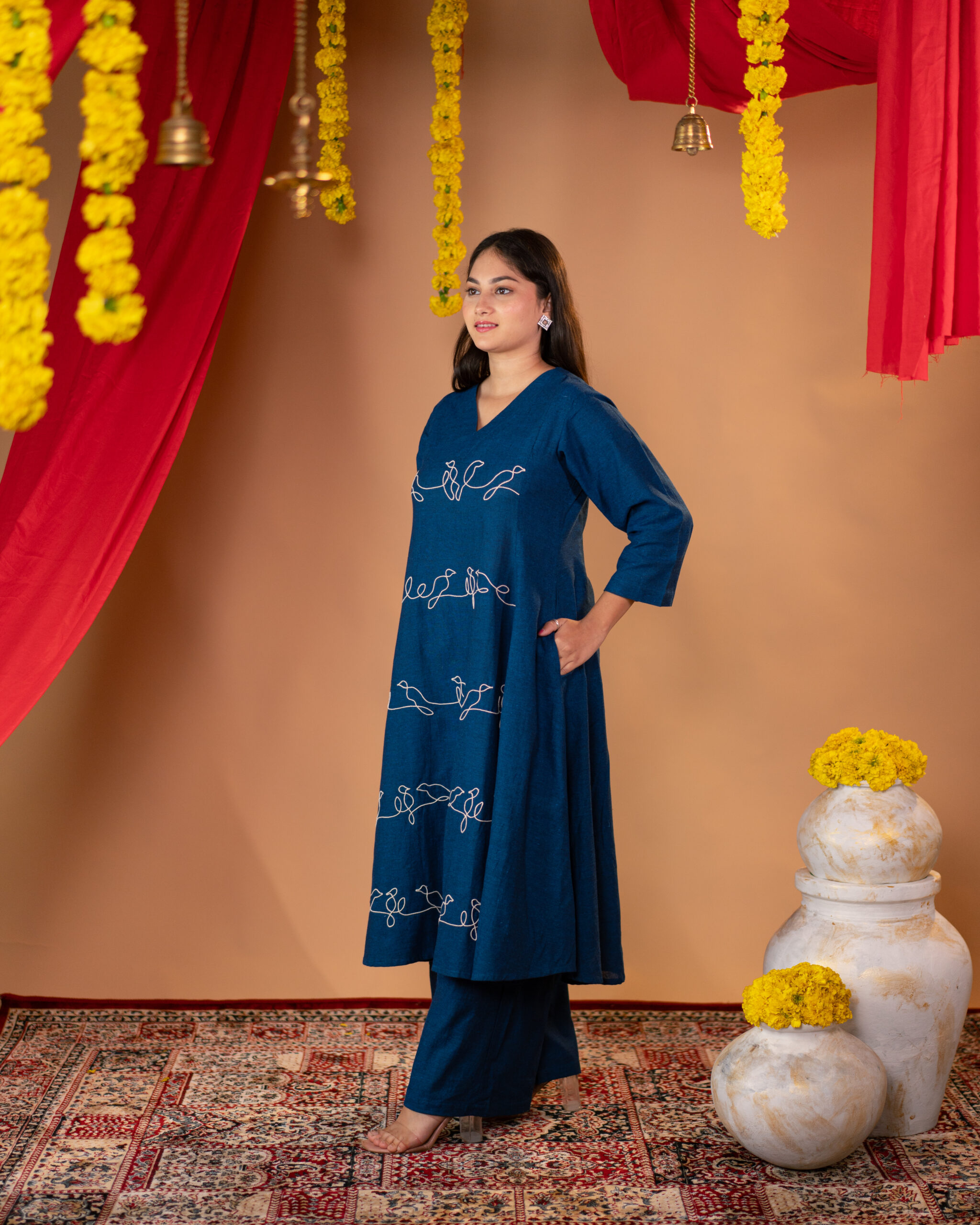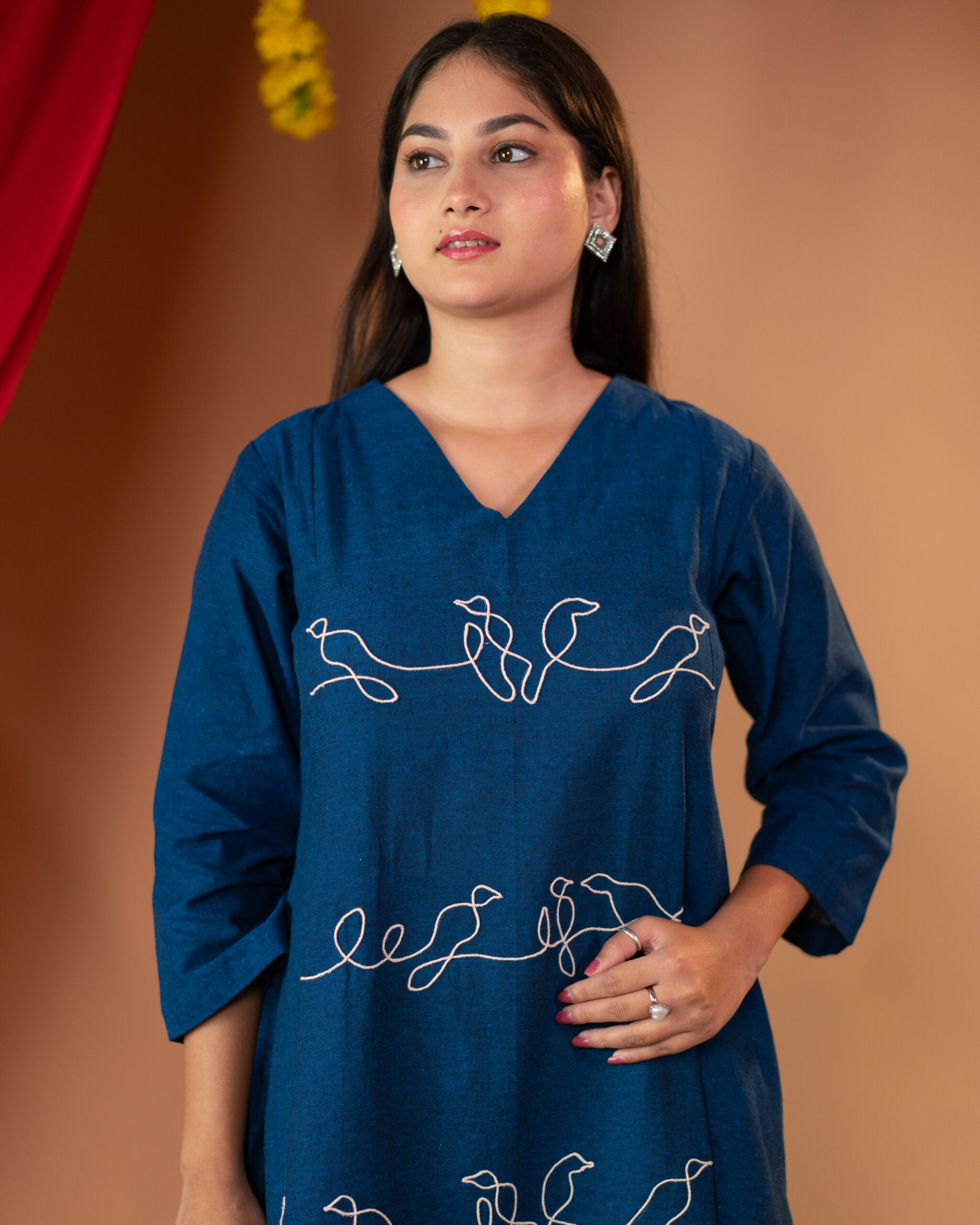 • V-Neck With Dori Hand Embroidery On front of kurta