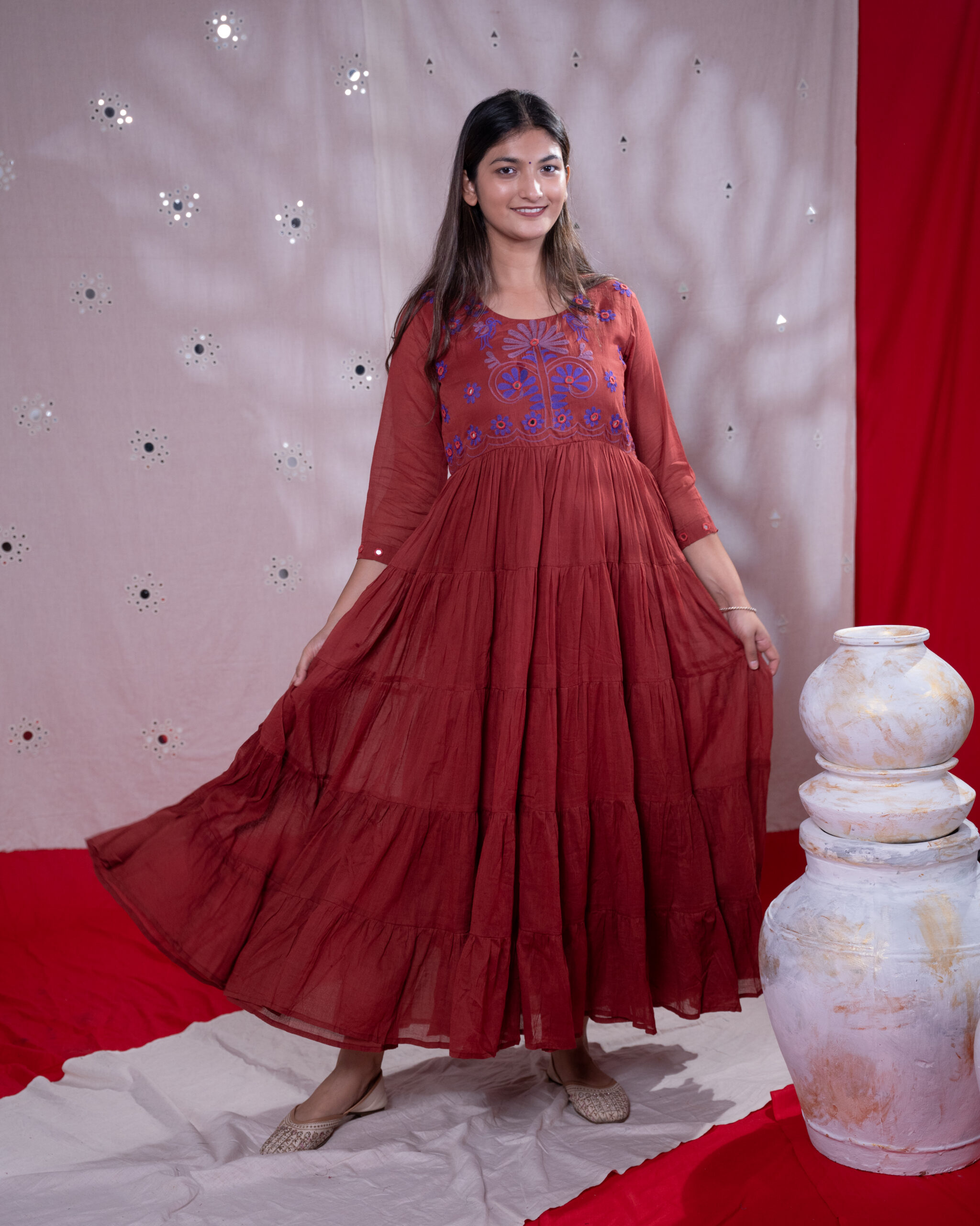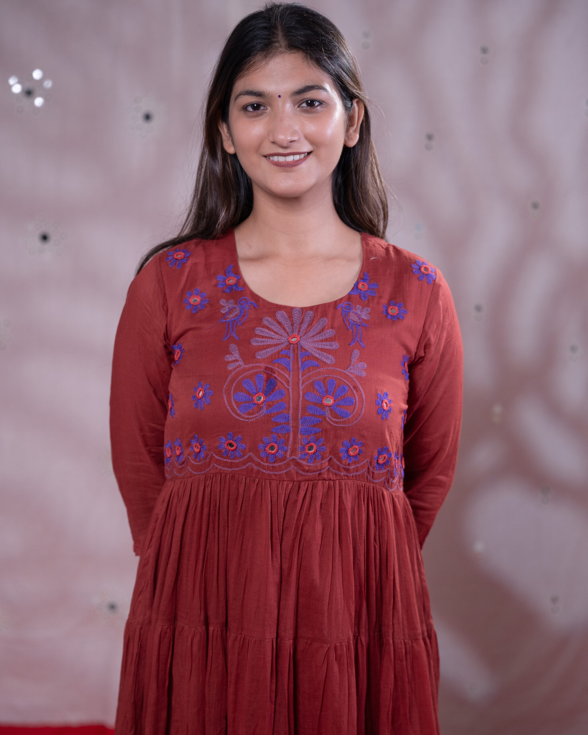 - Details: Elegent Dress with Beautifull Aari and Real Hand Embroidery Mirror Work