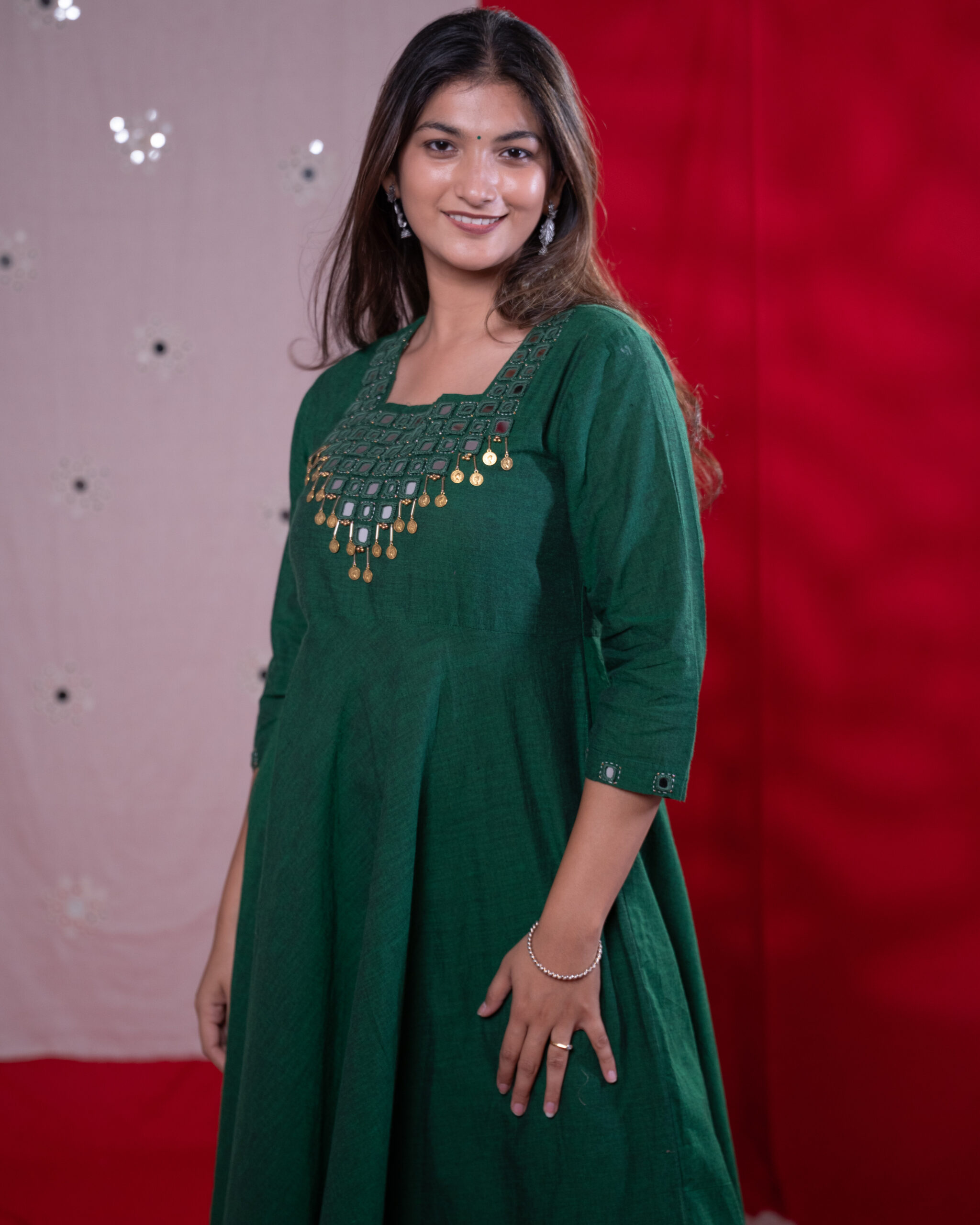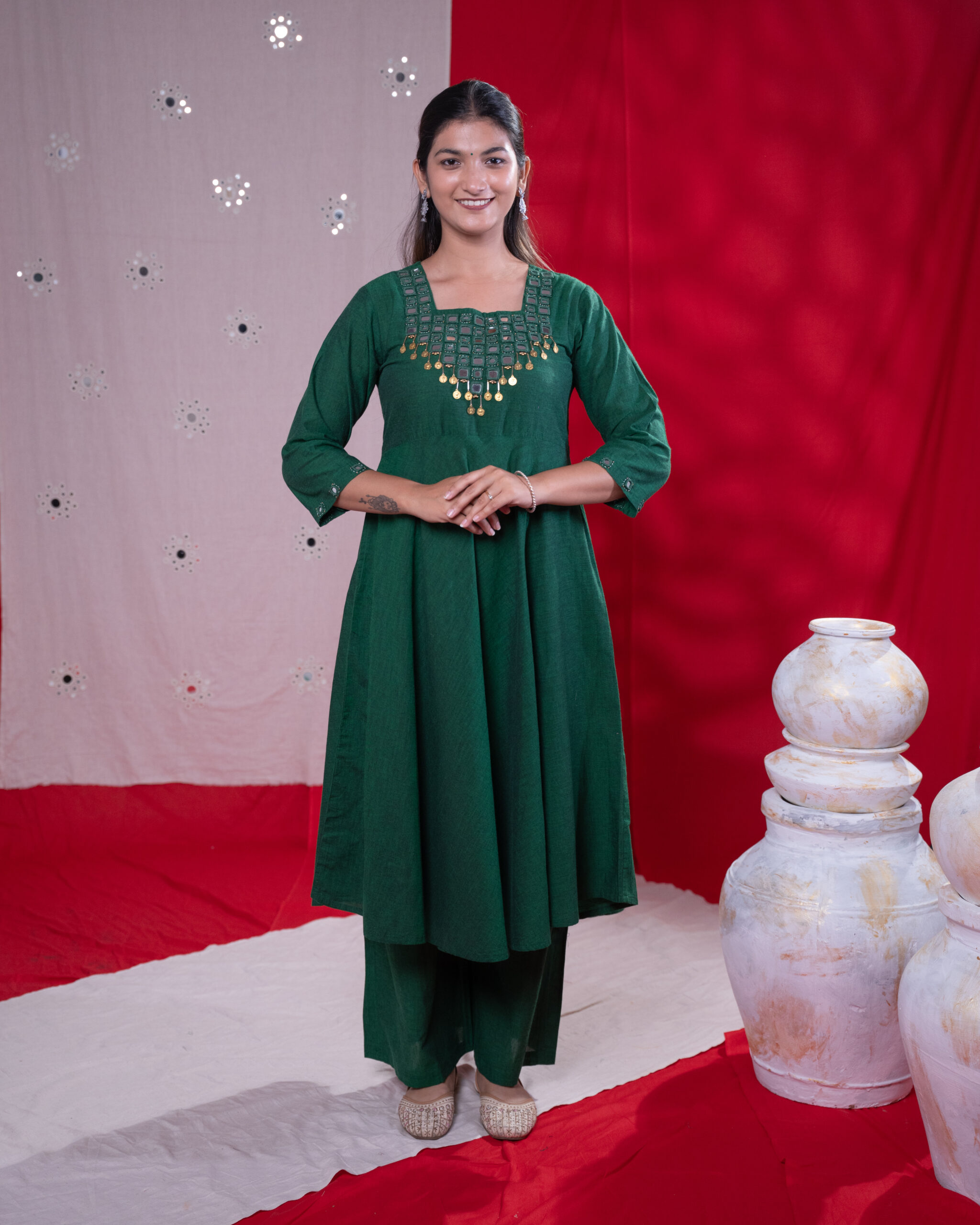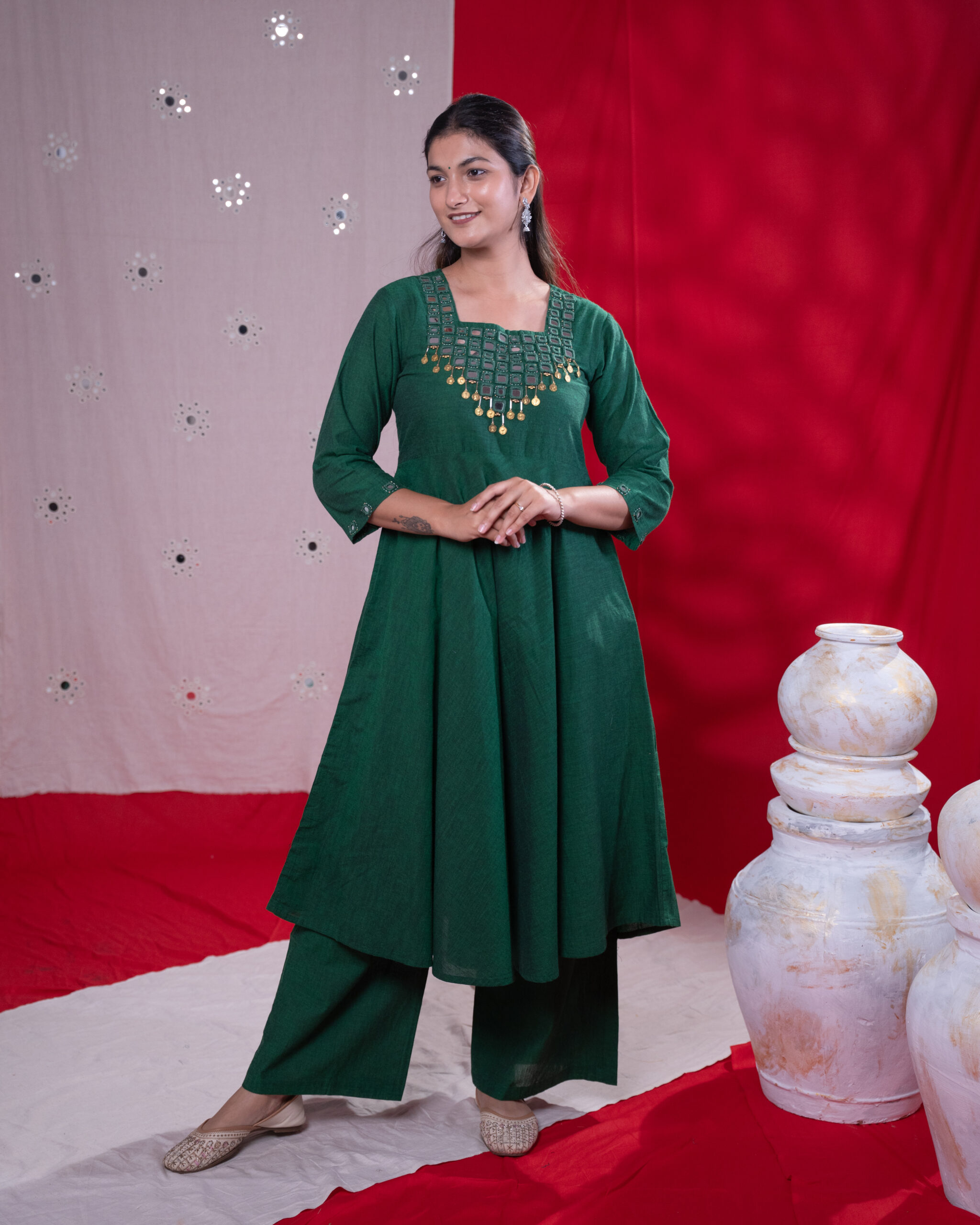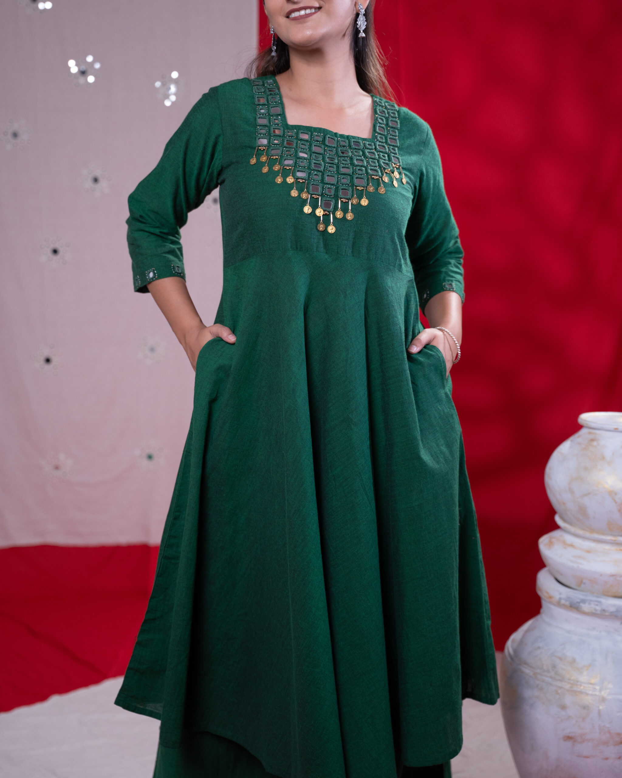 - Bottle Green Color with Flaired Kurta