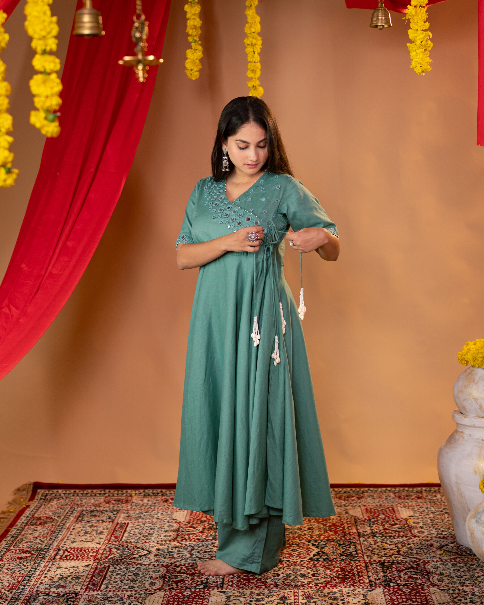 - Stylish Half Sleevs With Hand Mirror work Detailing Beads Detailing