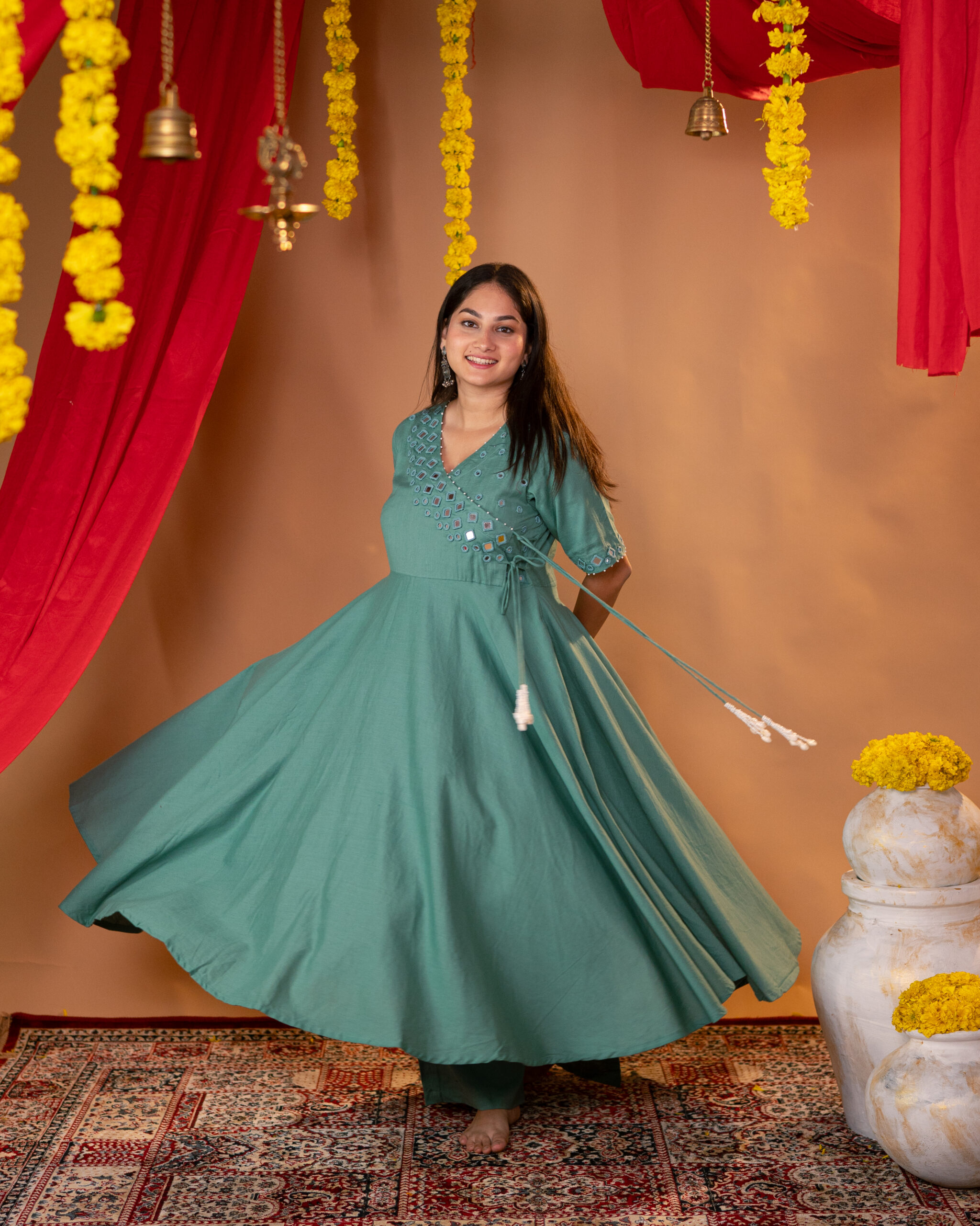 - V-Neck with Real Mirror Handwork Embroidery and Beads Detailing