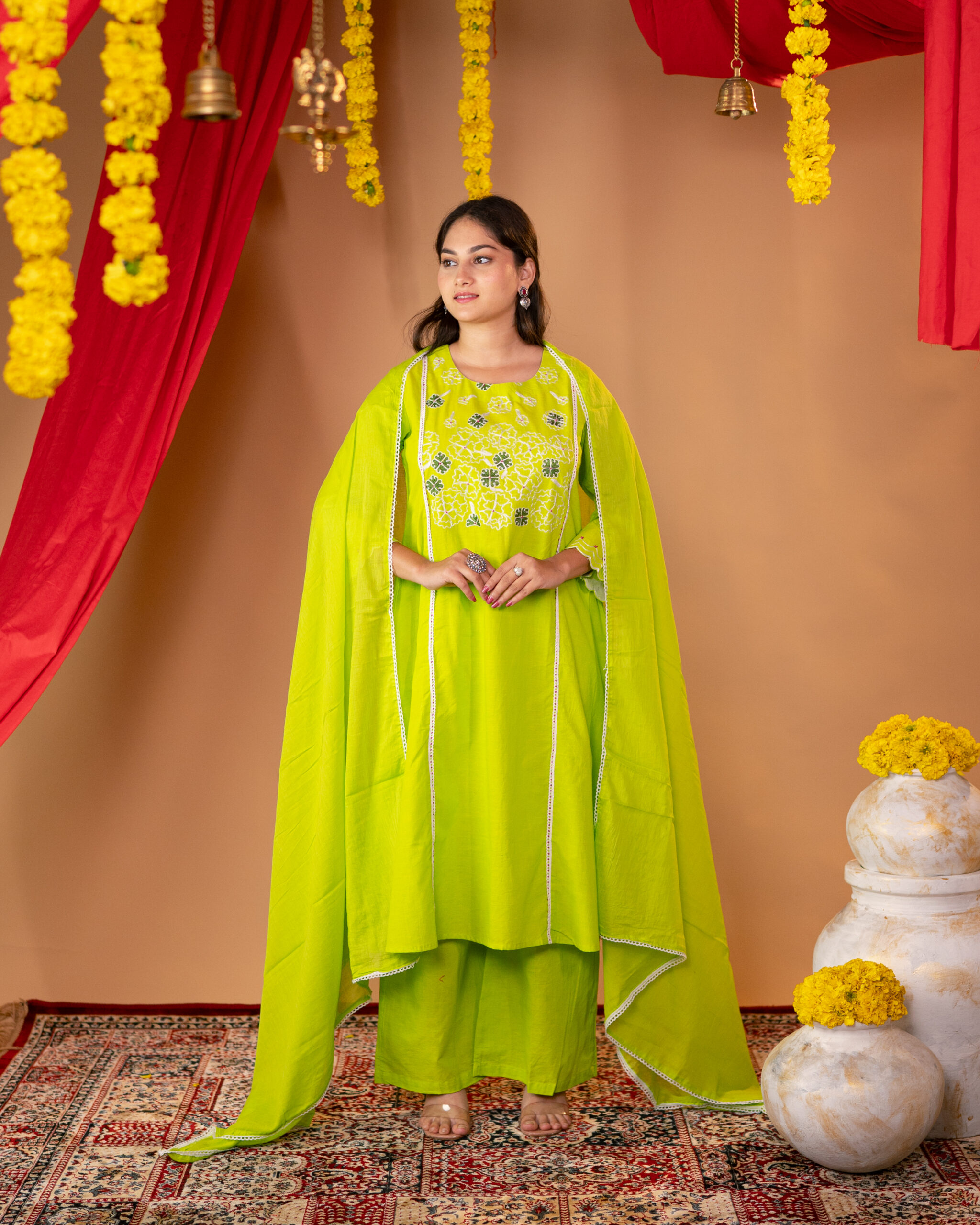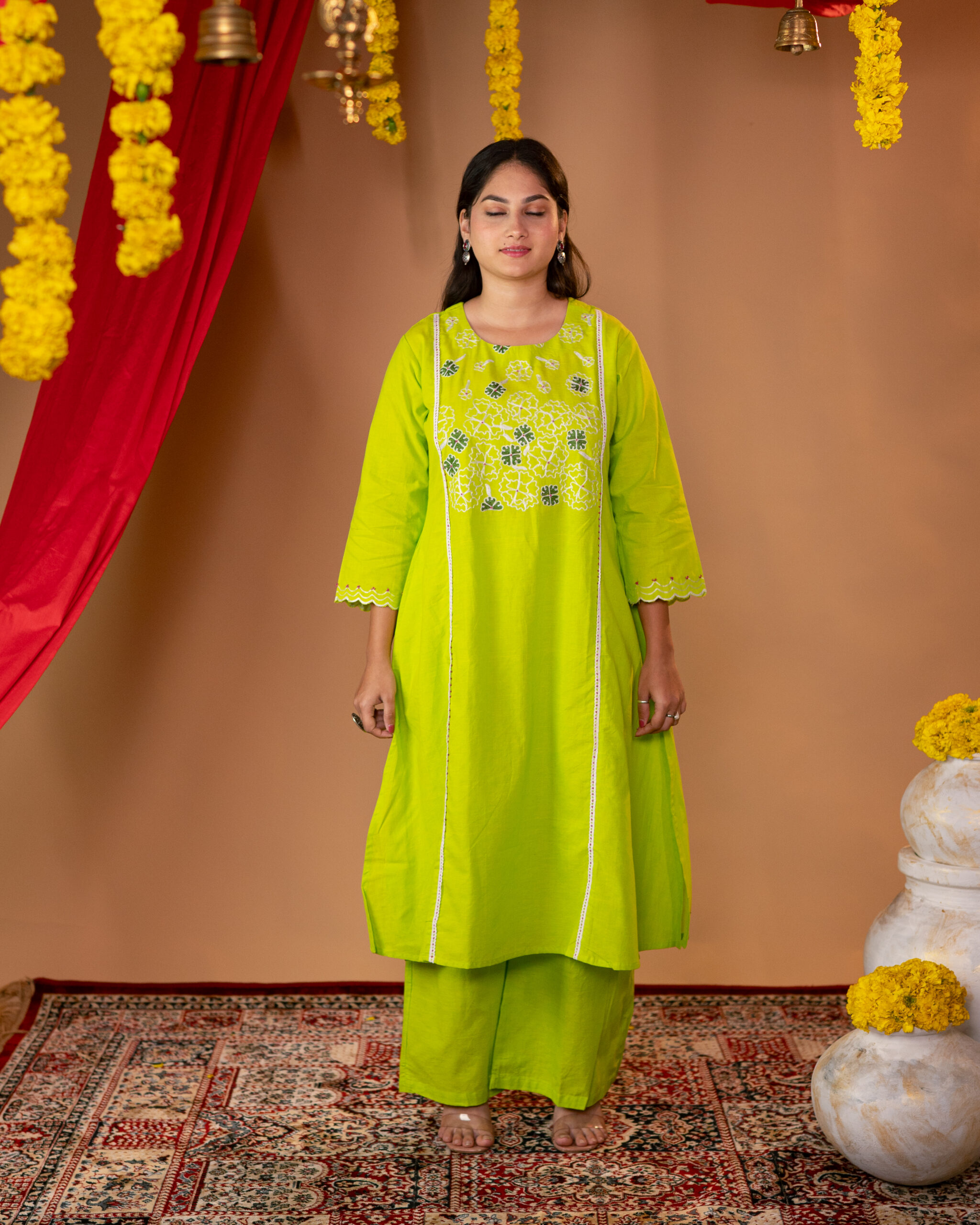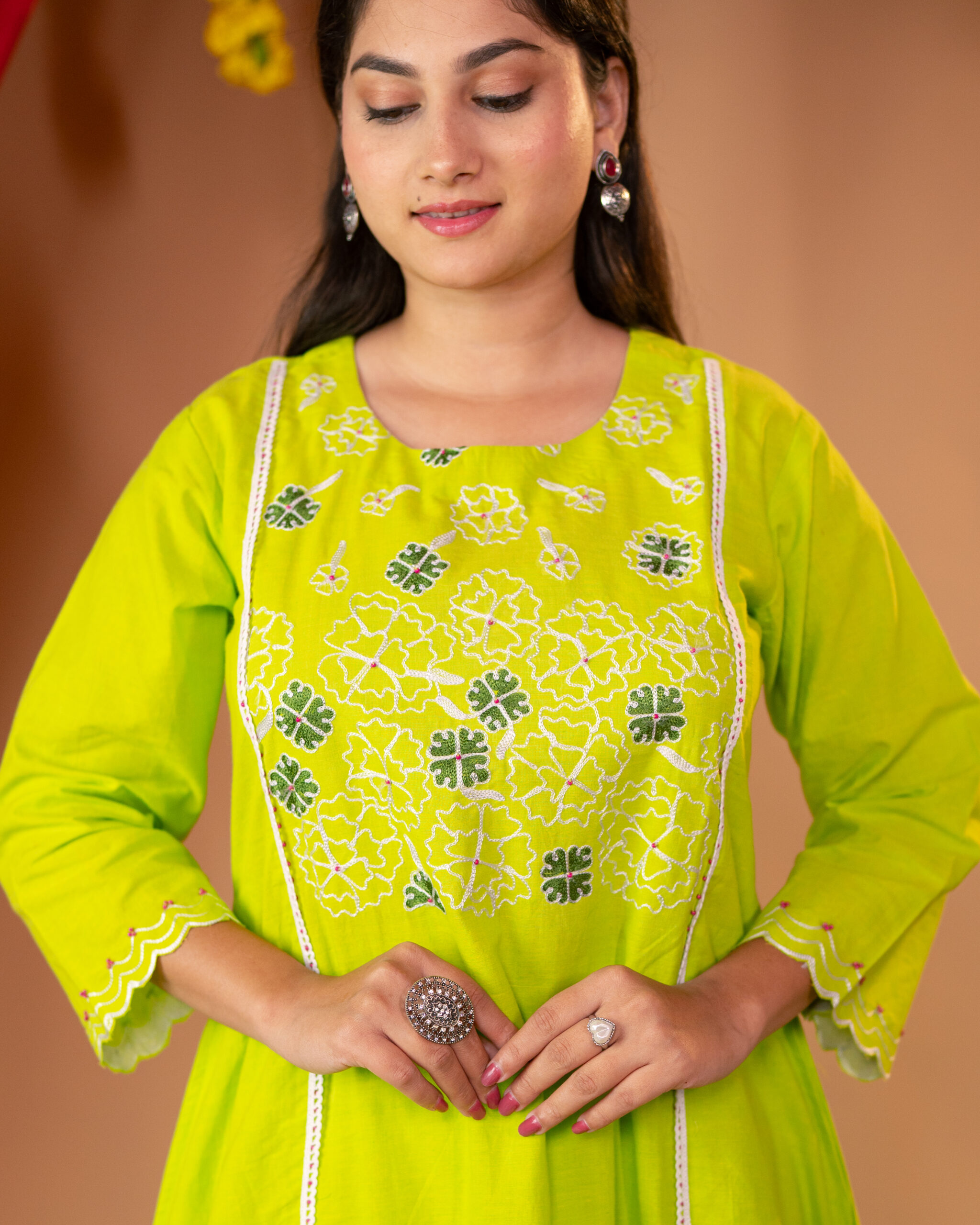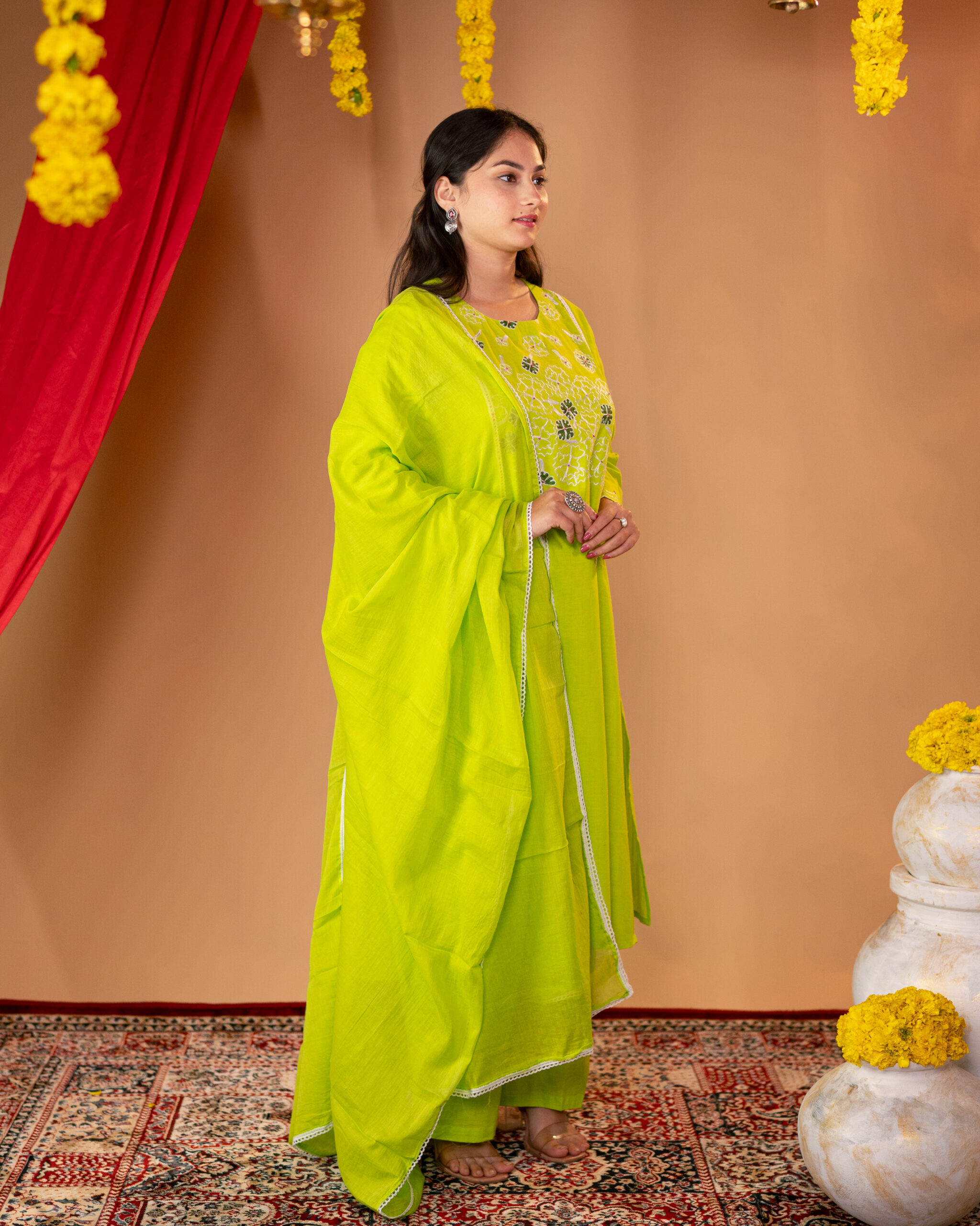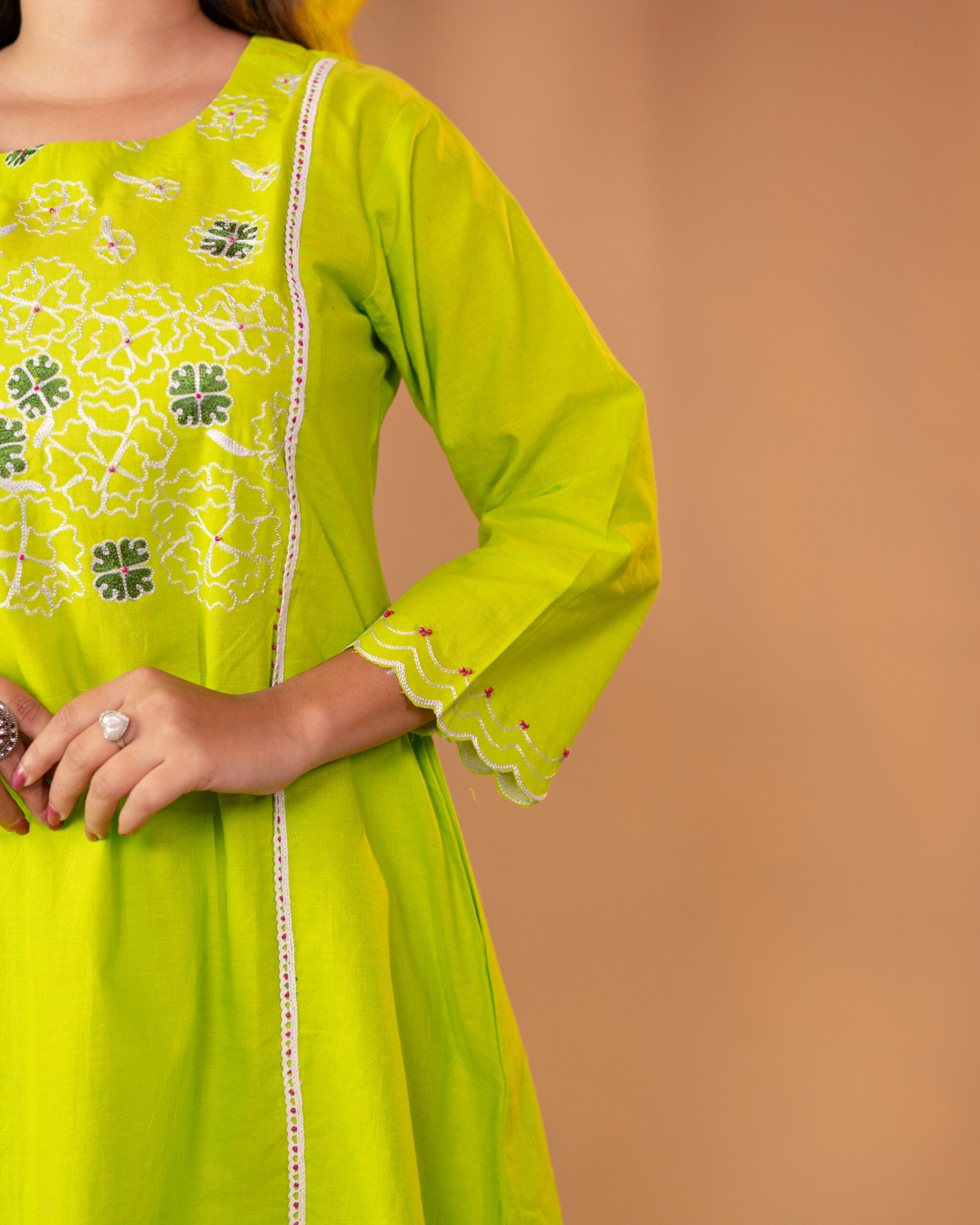 - Parrot Green Color with Beautiful Hand Aari Embroidery with Beads detailing